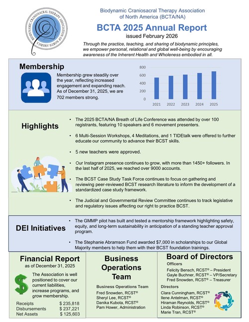 BCTA/NA Annual ReportingAnnual ReportsEach year, the BCTA/NA publishes an annual report for members to highlight our activities, accomplishments and financial report for the previous year. 2025 Annual Report (published February 2025) 2024 Annual Report (published February 2024) 2023 Annual Report (published April 2023) 2022 Annual Report (published April 2022) 2021 Annual Report (published May 10, 2021) 2020 Annual Report (published May 31, 2020) 2019 Annual Report (published May 31, 2019) 2018 Annual Report (published March 31, 2018) Annual Form 990 (U.S. Internal Revenue Service)2024 Form 990-EZ (filed for the 2024 tax year)